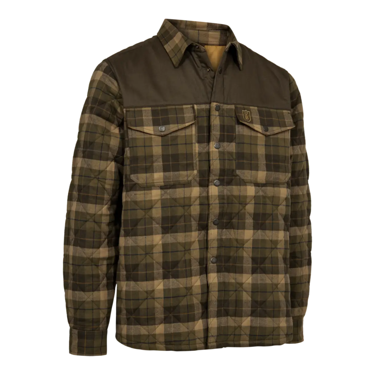 Lavet i børstet bomuld med DEER-TEX® Temp isolering, som giver let varme og blød komfort i ét alsidigt lag. Det quiltede design, kontrastskuldre og albueforstærkninger samt trykknapper foran giver et robust udtryk, mens brystlommer med klap og lommer i siden sikrer praktisk opbevaring på farten.