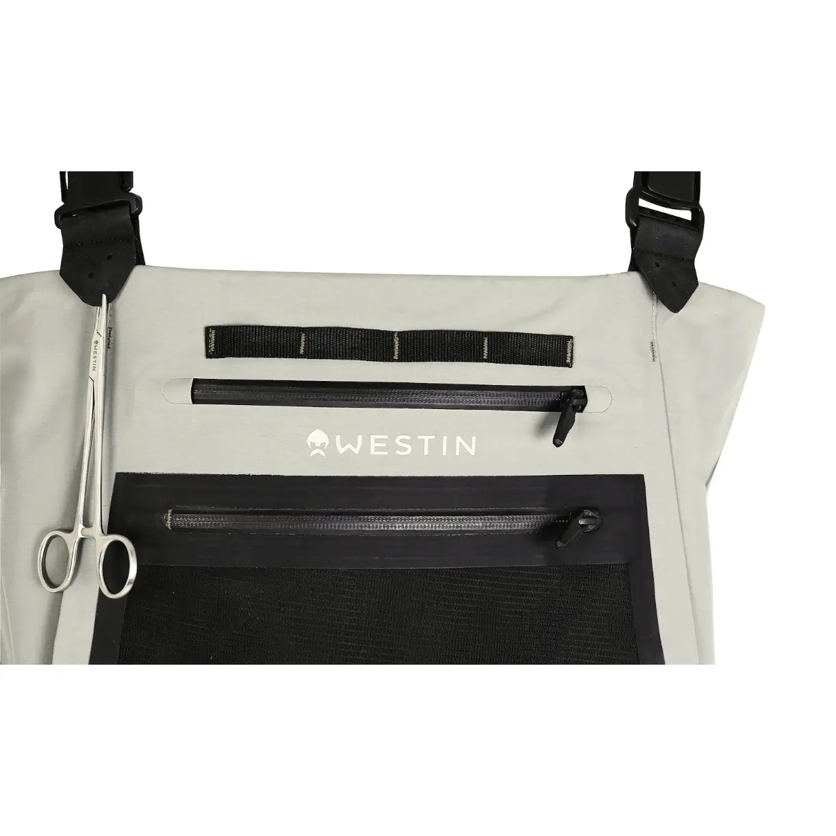 Wadersene er udstyret med flere praktiske lommer og detaljer, som gør det nemt at organisere dit grej. De fleeceforede håndvarmerlommer giver ekstra komfort på kolde dage, mens de justerbare seler og bælte sikrer en god pasform.